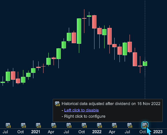 Passen Sie die historischen Daten und die Berechnung Ihrer Indikatoren an, um die Lücken in Fällen von Dividendenausschüttungen zu glätten.