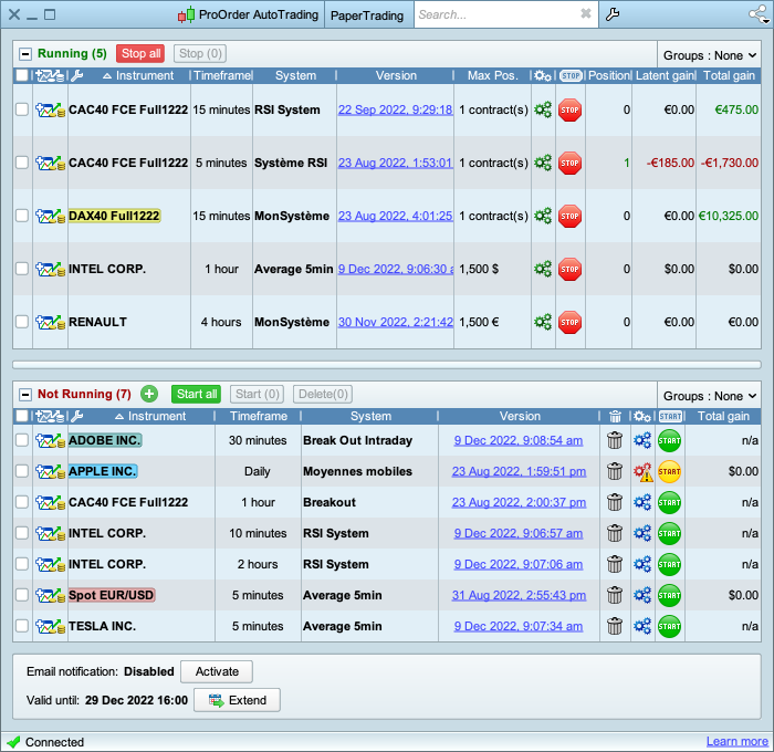 Run up to 100 automatic trading systems simultaneously on our dedicated servers and monitor the results of each system in your workstation.