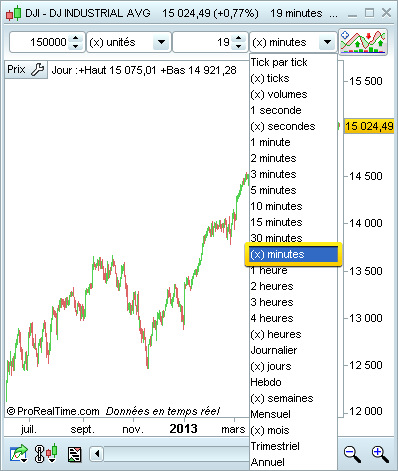 | 15 minutes | 5 minutes | 1 minute | 500 ticks | 1 heure | journalier | |